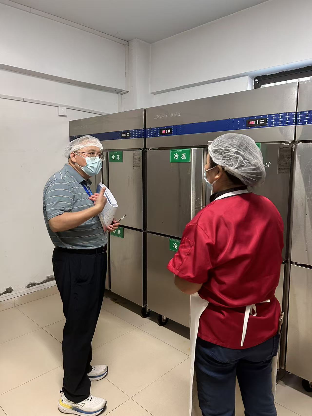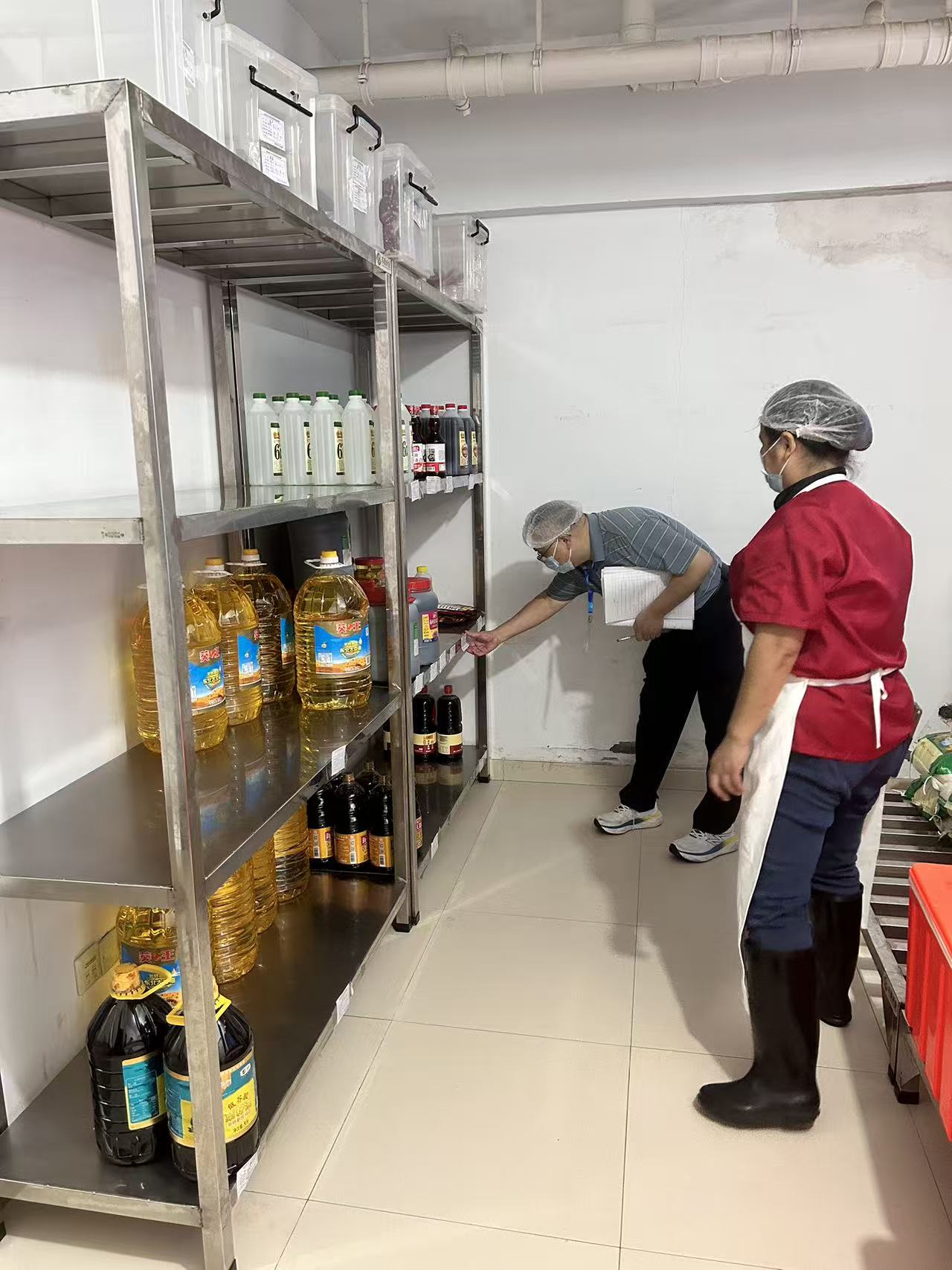 随后,陈校长前往学校食堂,重点检查食品原材料采购台账、油烟通道清洗记录及“三防”措施落实情况。在食堂操作间,他仔细查看厨具消毒流程、食材储存条件,反复叮嘱食堂负责人:“要始终把师生饮食安全与卫生保障放在首位。”