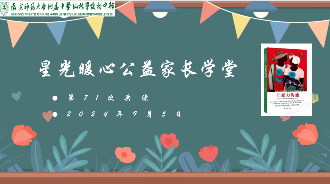 2024年9月5日中午12:30分,附中仙林召开“星光暖心公益家长学堂”第七十一期线上读书分享会。本次共读由王慧副校长组织,心理专家王新蓉老师全程陪伴,全体成员积极参与,共读分享。